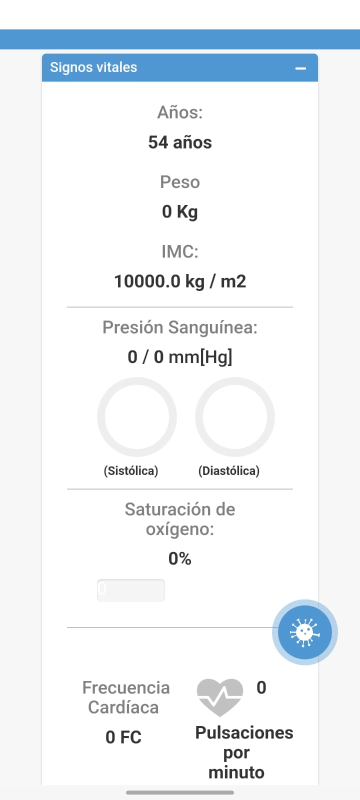 Para editar la información es necesario darle clic a este icono X, el cual aparece una vez el usuario seleccione el signo vital que quiere editar.
